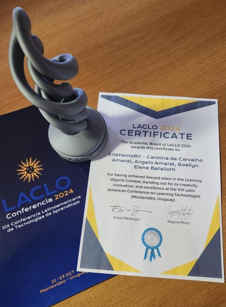O aplicativo AtletismoRV foi premiado com o 2º lugar no Concurso de Aplicativos e Recursos de Aprendizagem durante a XIX Conferência Latino-americana de Tecnologias de Aprendizagem (LACLO 2024).